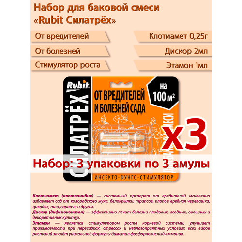 Средство от болезней и вредителей спасатель сада силатрех БИО клотиамет 0,25г, дискор 2мл, этамон 1мл Рубит 3 уп