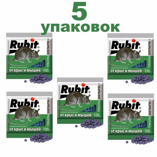 Средство от крыс и мышей Rubit Зоокумарин + гранулы 100 гр. (5 упаковок)