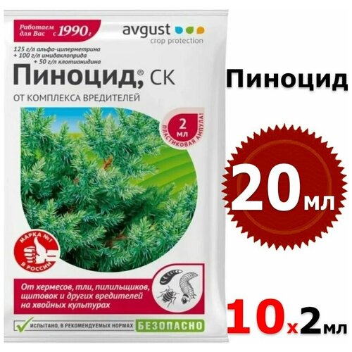 20мл Пиноцид 2мл х10шт Средство от садовых вредителей для хвойных растений Avgust Август / Препарат от комплекса вредителей на хвойных культурах