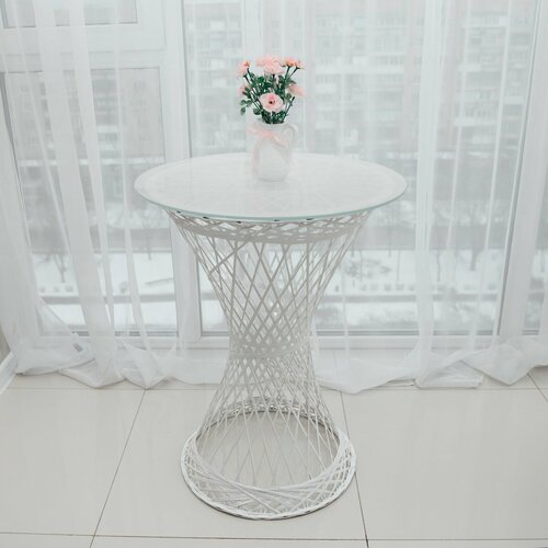 Стол Ajurio, круглый, плетеный, для улицы, стекло, композит, 58х58х73 см