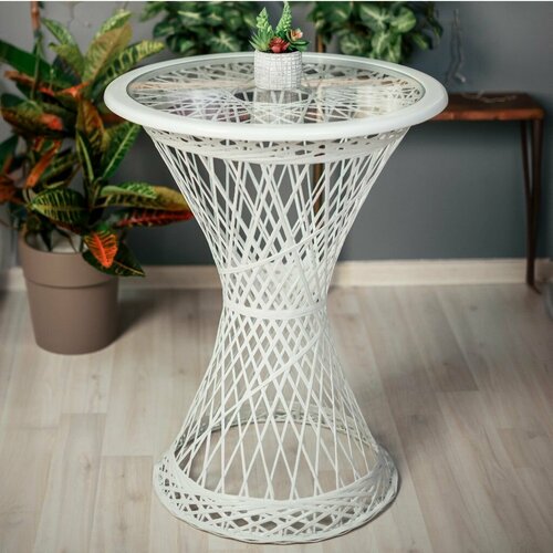 Стол Ajurio, для улицы, плетеный, круглый, столешница стекло