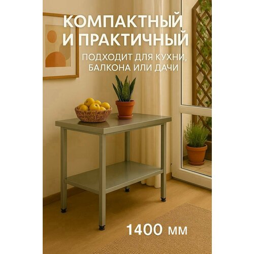 Стол 140х60 для дачи и дома с полкой, оцинкованный каркас, нагрузка до 250 кг, разборный, регулируемые ножки. Нержавеющая сталь, металлический