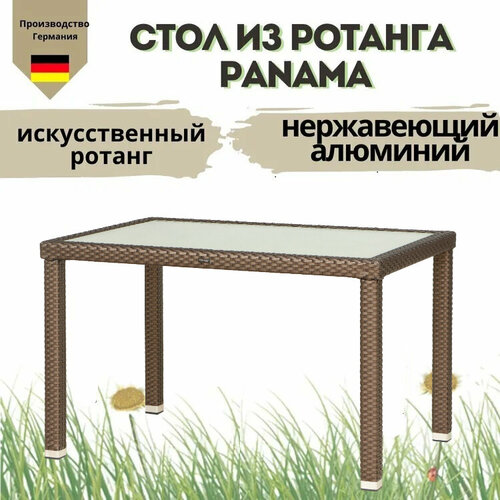 Стол Panama, 120х80, ротанг, стекло, алюминий, цвет мокко