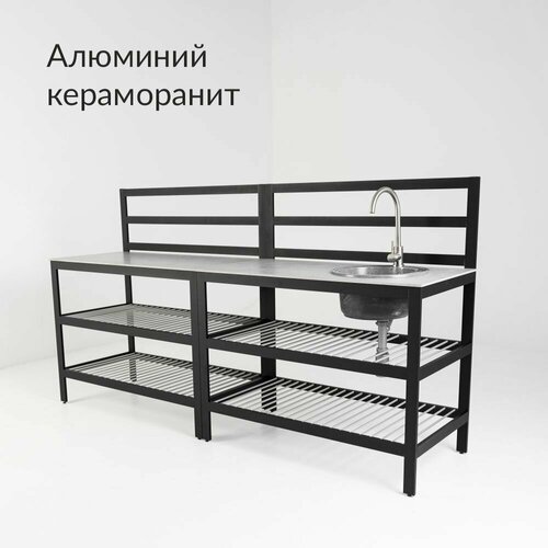 Уличная кухня Амрита с рейлингами, большая, алюминий, керамогранит, Террасный кот