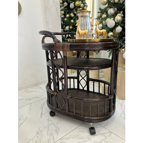 Столик сервировочный из натурального ротанга 21/06, цвет темно-коричневый