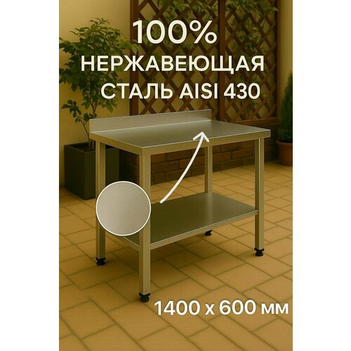 Стол 140х60 с бортом для дачи и дома с полкой, оцинкованный каркас, нагрузка до 250 кг, разборный, регулируемые ножки. Нержавеющая сталь, металлический, металлический