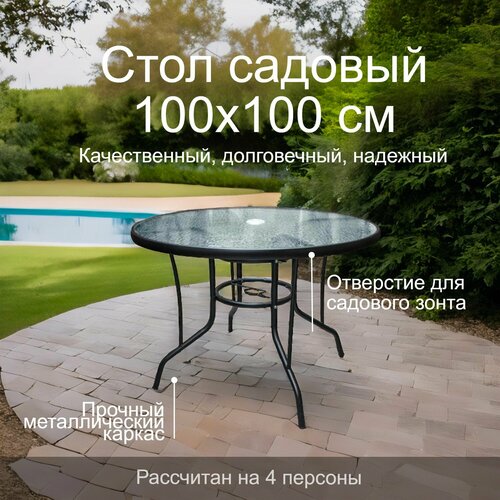 Стол садовый со стеклянной столешницей круглый 100х70 см