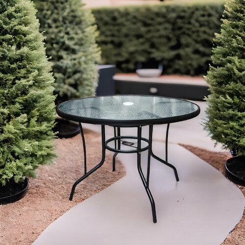 Стол садовый со стеклянной столешницей круглый 80х70 см