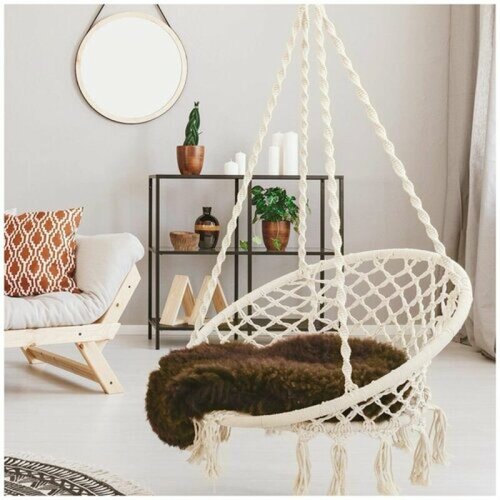 Кресло-качели CoolWalk Technotide, с сеткой, металл, хлопок, бежевые, 80см