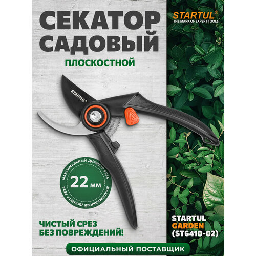 Сучкорез садовый универсальный STARTUL GARDEN (ST6096-04) с наковальней секатор для веток, кустов, деревьев черный, оранжевый