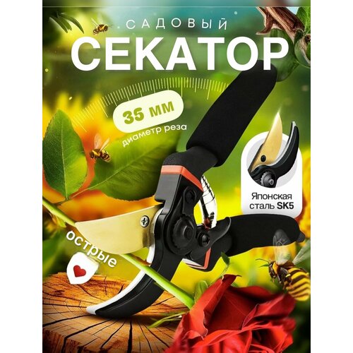Секатор садовый, с прочными лезвиями, SK5 японская сталь, длина 21см, диаметр среза до 35 мм