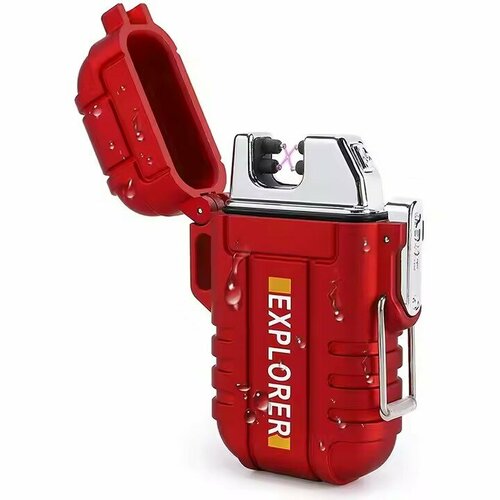 Зажигалка плазменная ветро-водозащитная USB, красная
