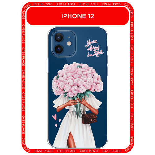 Чехол на Apple iPhone 12/12 Pro / Айфон 12/12 Про с принтом Девушка с букетом пионов, прозрачный