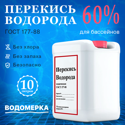 Перекись водорода, 60%, 10 литров, для бассейнов водоемов и саун