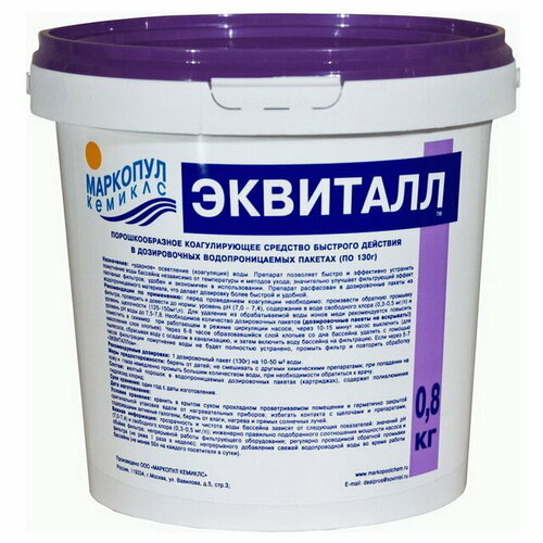 Коагулирующее средство для быстрого осветления воды Эквиталл порошок 0,8 кг