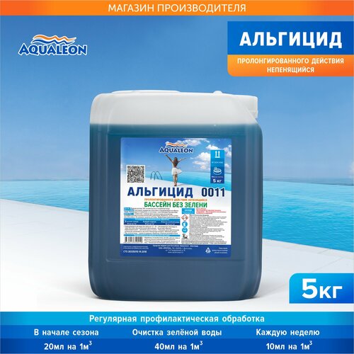 Жидкость для бассейна AQUALEON Альгицид пролонгированного действия непенящийся, 5 л1
