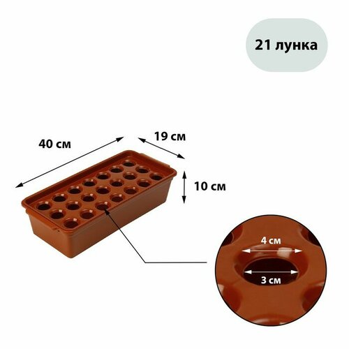 Ящик для рассады, 40 × 19 × 10 см, 21 лунка, красный