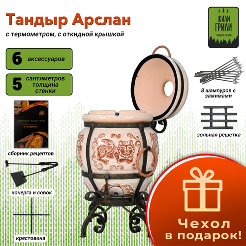 Тандыр ЭкоТандыр Арслан с откидной крышкой, слоновая кость / чехол и сборник рецептов в подарок