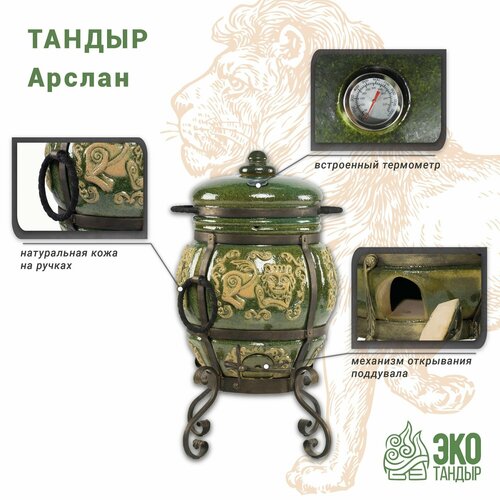 ТандырЭкоТандыр Арслан, / тандыр с подставкой и термометром в комплекте, чехол в подарок