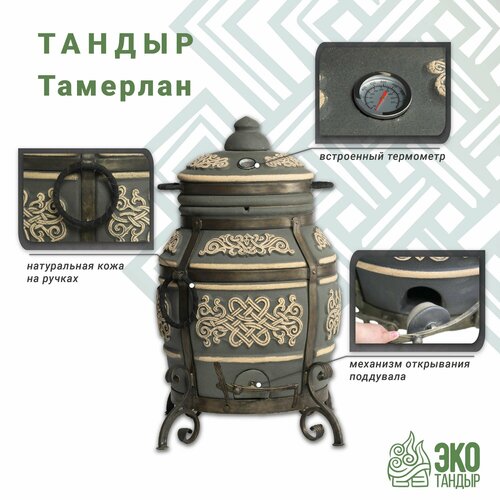 Тандыр ЭкоТандыр Арслан с термометром, цвет черная патина / маленький тандыр для дачи