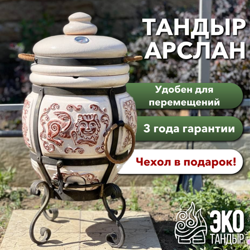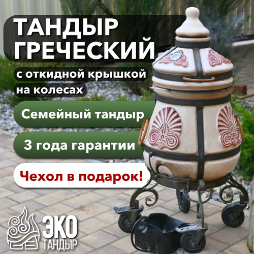 Тандыр ЭкоТандыр Греческий с откидной крышкой на колесах, слоновая кость / сборник рецептов, чехол в подарок