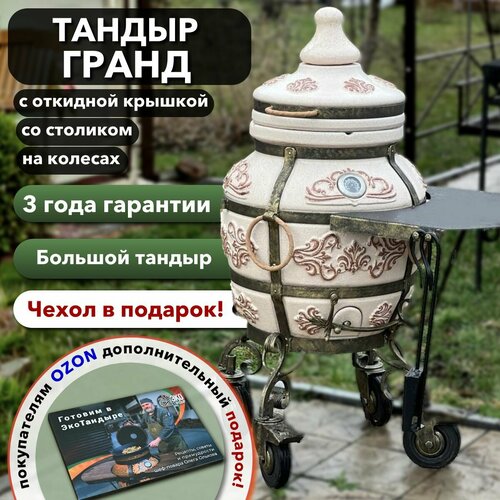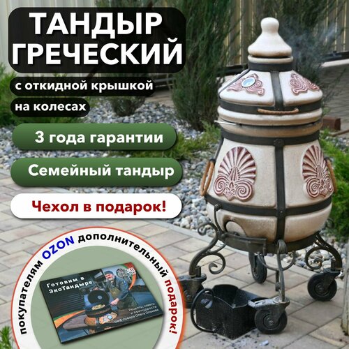 Тандыр ЭкоТандыр Греческий с откидной крышкой на колесах, слоновая кость / сборник рецептов, чехол в подарок