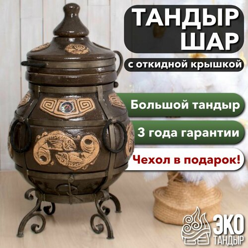 Тандыр ЭкоТандыр Урал с термометром, / чехол, сборник рецептов в подарок / средний тандыр для семьи на дачу