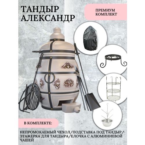 В стоимость набора "Премиум" к тандыру Ахмат входит:- Подставка под тандыр,- Этажерка диаметром 18 см, 3х ярусная,- Ёлочка с чашей из нержавеющей стали 18 см,- Крюк для мяса,- Термостойкие перчатки,- Набор для лепешек (рукавица и подушка).