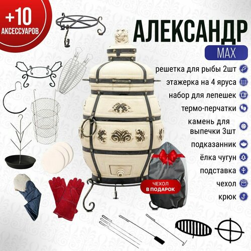 Набор "MAX": Тандыр для дачи большой - Александр с откидной крышкой и комплектом аксессуаров, Технокерамика