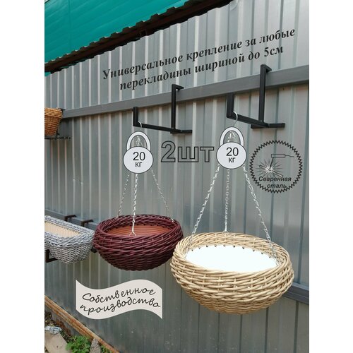 Держатель садовый для ящиков и кашпо растений комсис на забор, штакетник Черный 2шт
