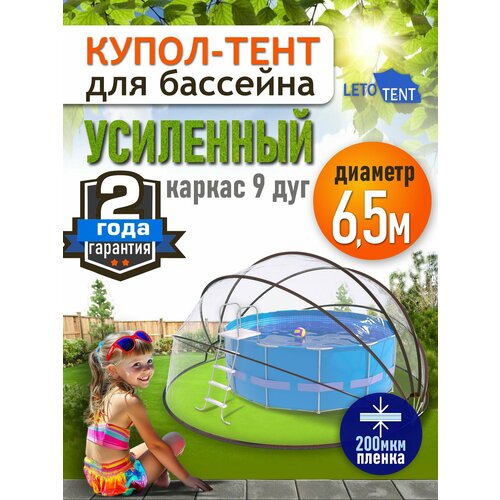 Купол Тент для бассейна Летотент 6,5м , ПВХ 200 микрон 9 дуг/4 ус
