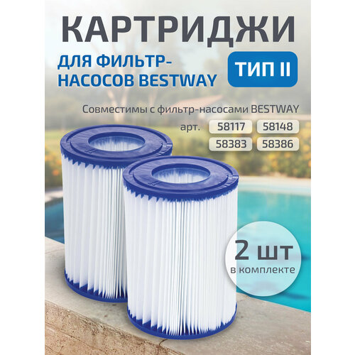 Картридж тип II (блок из 2 шт) Bestway 10,6х13,6 см для фильтр-насосов 58094