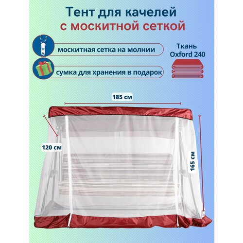 Тент с москитной сеткой для садовых качелей Касабланка 185 х 120 см, бордо-белая