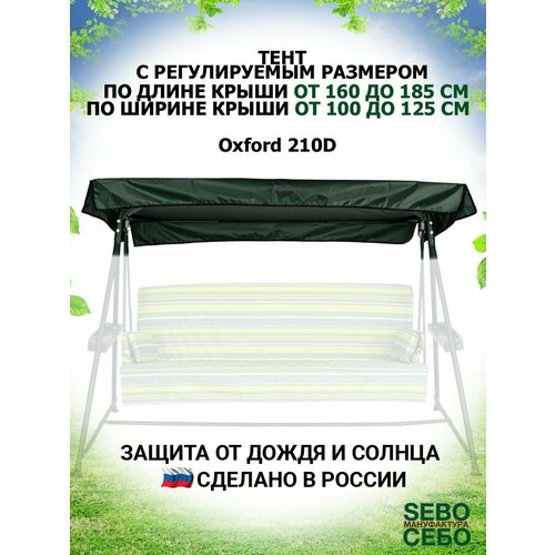Тент для садовых качелей SEBO крыша из водоотталкивающей ткани, универсальный 190 - 215 /120 -145, зеленый