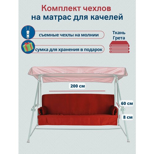Чехол съемный на матрас для садовых качелей, защитный комплект сиденье+спинка, 200x60х8 см, бордовый