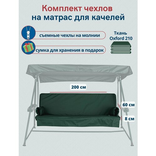 Чехол съемный на матрас для садовых качелей, комплект сиденье+спинка, 200x60х8 см, темно-зеленый