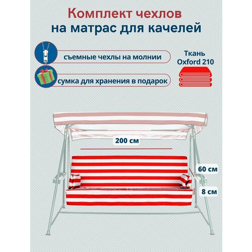 Чехол съемный на матрас для садовых качелей, непромокаемый комплект сиденье+спинка, 200x60х8 см, бордово-белый
