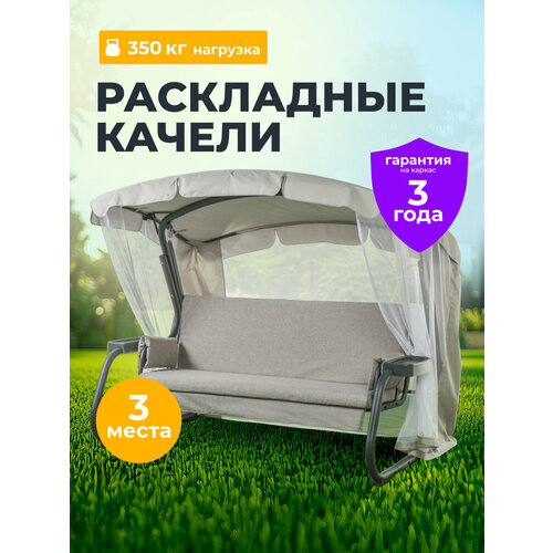 Качели садовые Дублин 3-местные, раскладные, с москитной сеткой, антрацит, 350 кг, металл