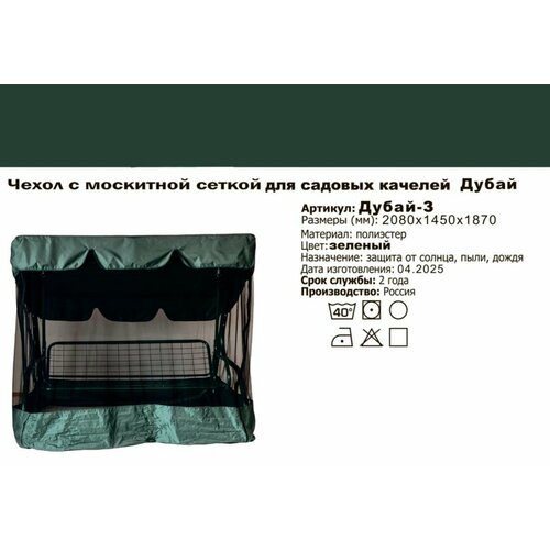 Тент с москитной сеткой для садовых качелей Дубай, 2080х1450х1870 мм, Зеленый, KALYMERA