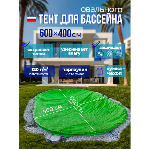 Тент защитный овальный для бассейна 6 х 4 м зеленый