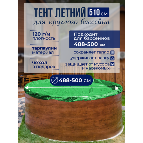 Тент защитный круглый для бассейна 5,49 - 5,5 м зеленый, синий
