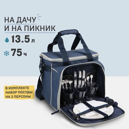 Набор для пикника Арктика Сумка-холодильник с набором посуды, 3 персоны, синий