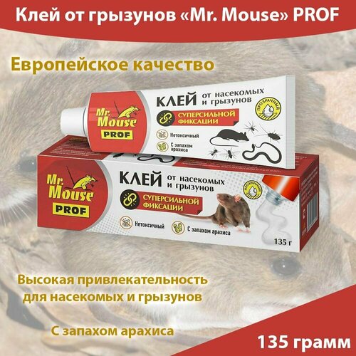 Клей от грызунов, средство от мышей и крыс 135г. со вкусом арахиса, суперсильной фиксации Mr.Mouse PROF
