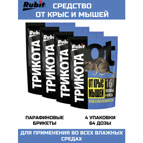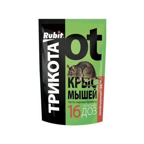 Средство от грызунов 16 брикетов Rubit Трикота, приманка для крыс и мышей, три кота от мышей, тесто-сырные брикеты от грызунов 150г