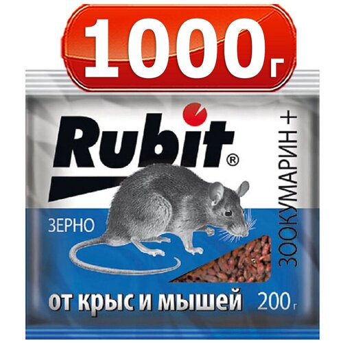 1кг Рубит ЗООКУМАРИН+ 200г х5шт Зерновая Смесь для уничтожения крыс и мышей / эффективное средство зерно о мышей и крыс, отрава