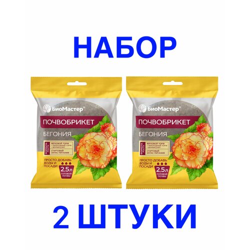 Почвобрикет бегония, 2,5 л, 2 пакета, БиоМастер, почва для бегоний, феттоний, фуксий