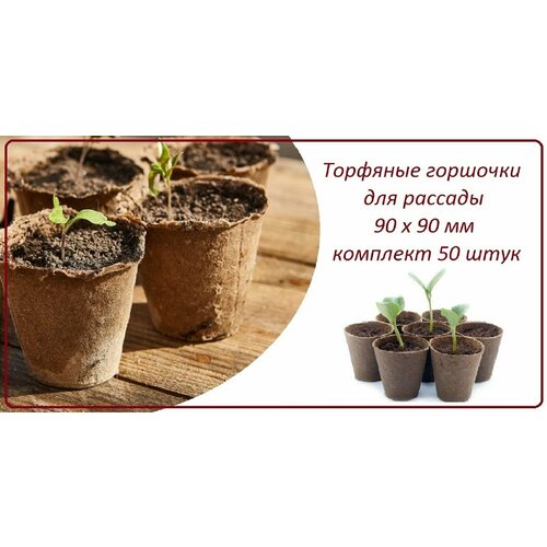 Горшочки торфяные для рассады 50 штук, d 90 х h 90 мм, набор стаканчиков для рассады всех видов овощей, цветов и растений