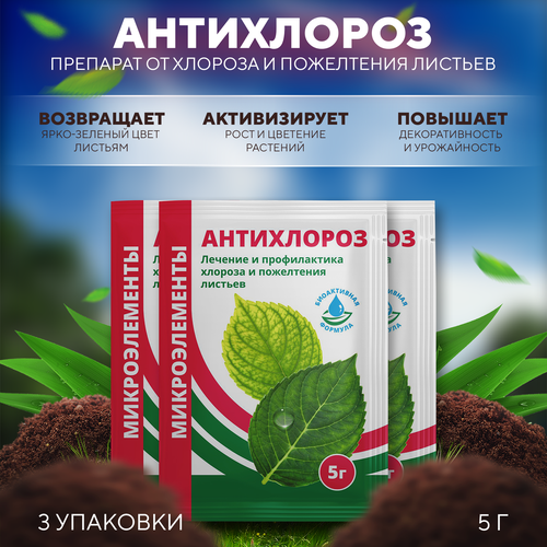 Препарат от хлороза и пожелтения листьев Антихлороз, БиоМастер 5 г 3 шт