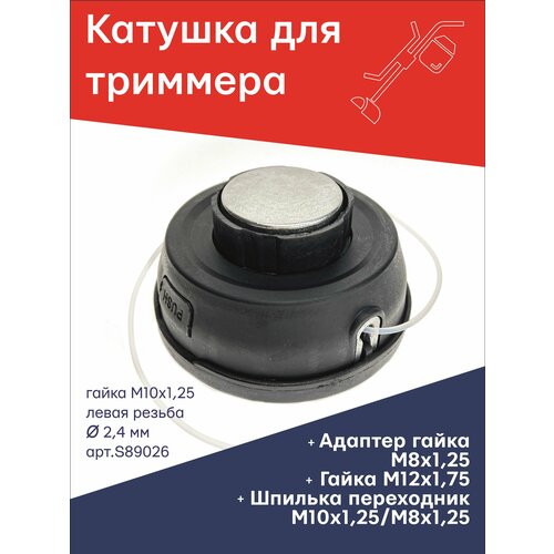 Универсальная катушка для китайских электрических триммеров с переходниками М6х1.25, М8х1.25 левая, М8х1.25