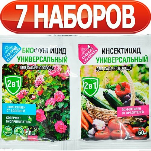 7 наборов Универсальный для сада и огорода 2в1 биофунгицид 10г + инсектицид 2мл для профилактики и защиты от болезней и вредителей Садовый спасатель